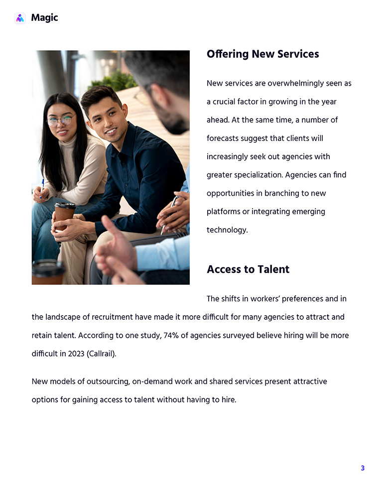With the help of a virtual assistant or remote team, you can sign more clients, save hours a week, and help your employees succeed. Whether you’re looking for someone to handle bookkeeping and admin tasks or want to source top-talent from around the world, a remote workforce is a great choice for marketing agencies.
