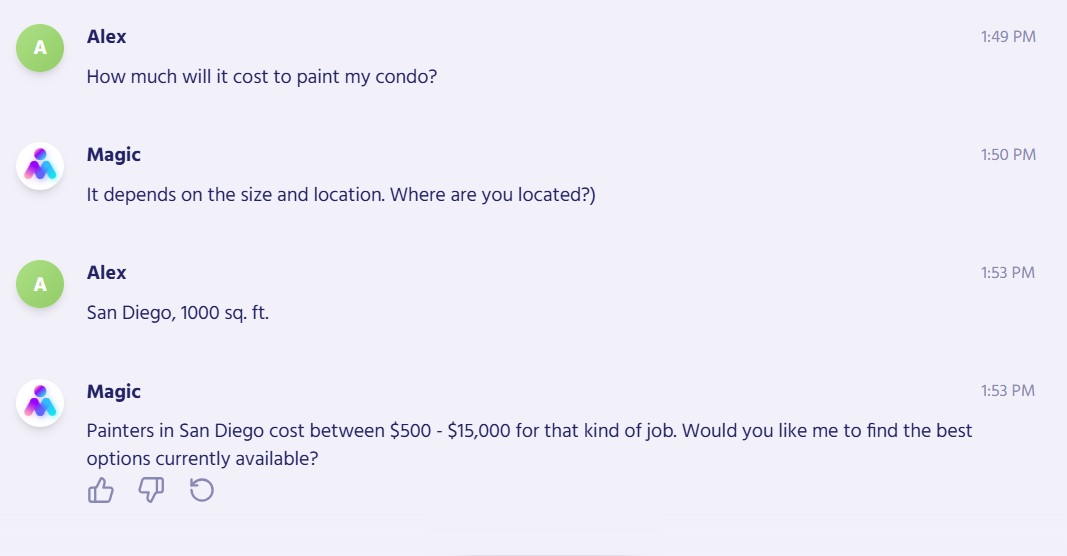 Magic 24/7 will get back to you, sometimes asking questions to clarify details, other times repeating back to you what they’re about to work on and when you should expect an update.