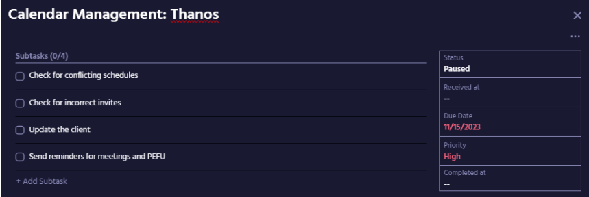 - Calendar Management: Calendar Management: [Name of Client/POC]