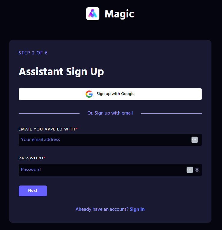 Creating an account in Magic Workspace