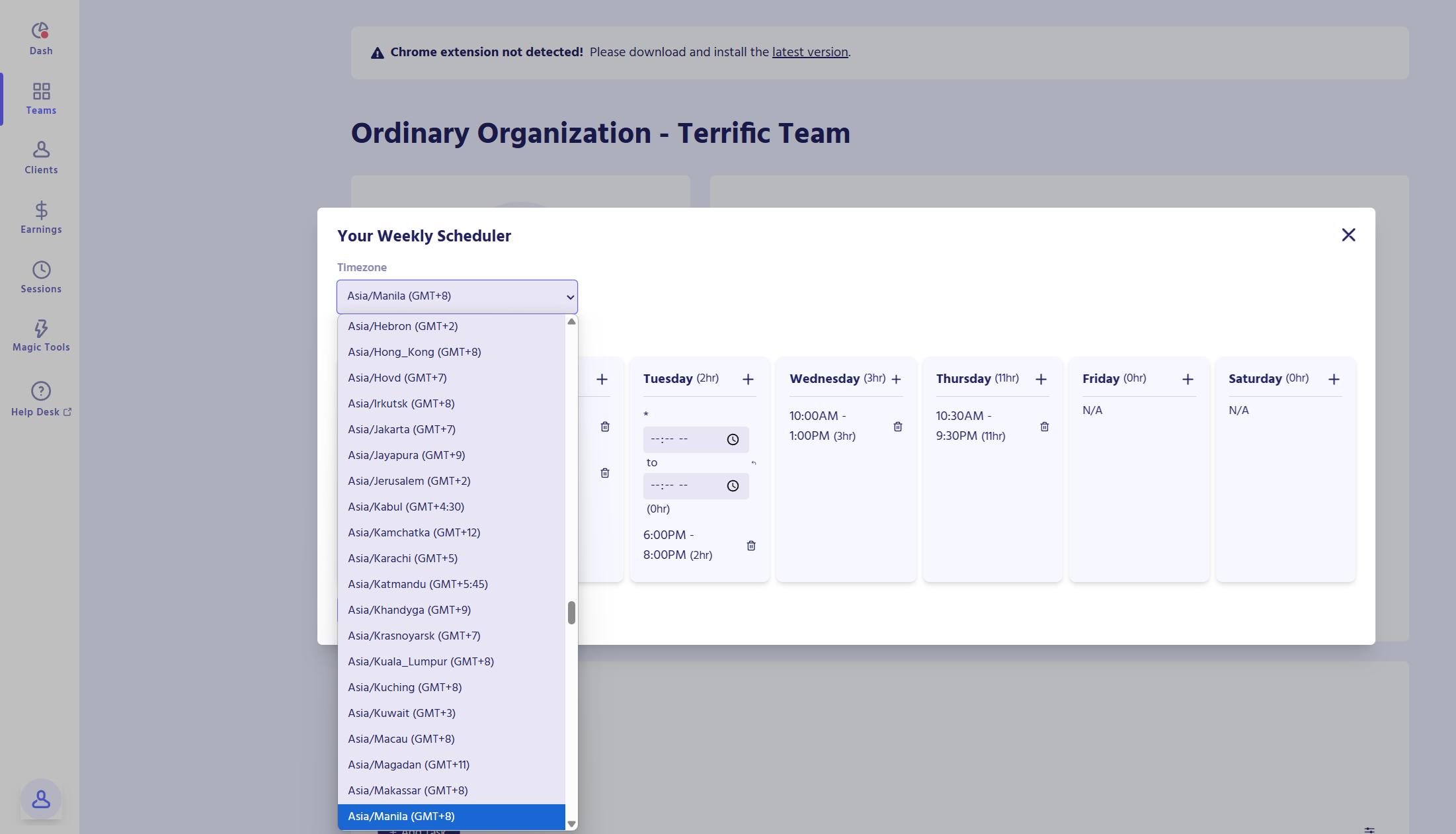 - Use the time zone dropdown menu to set your preferred time zone.