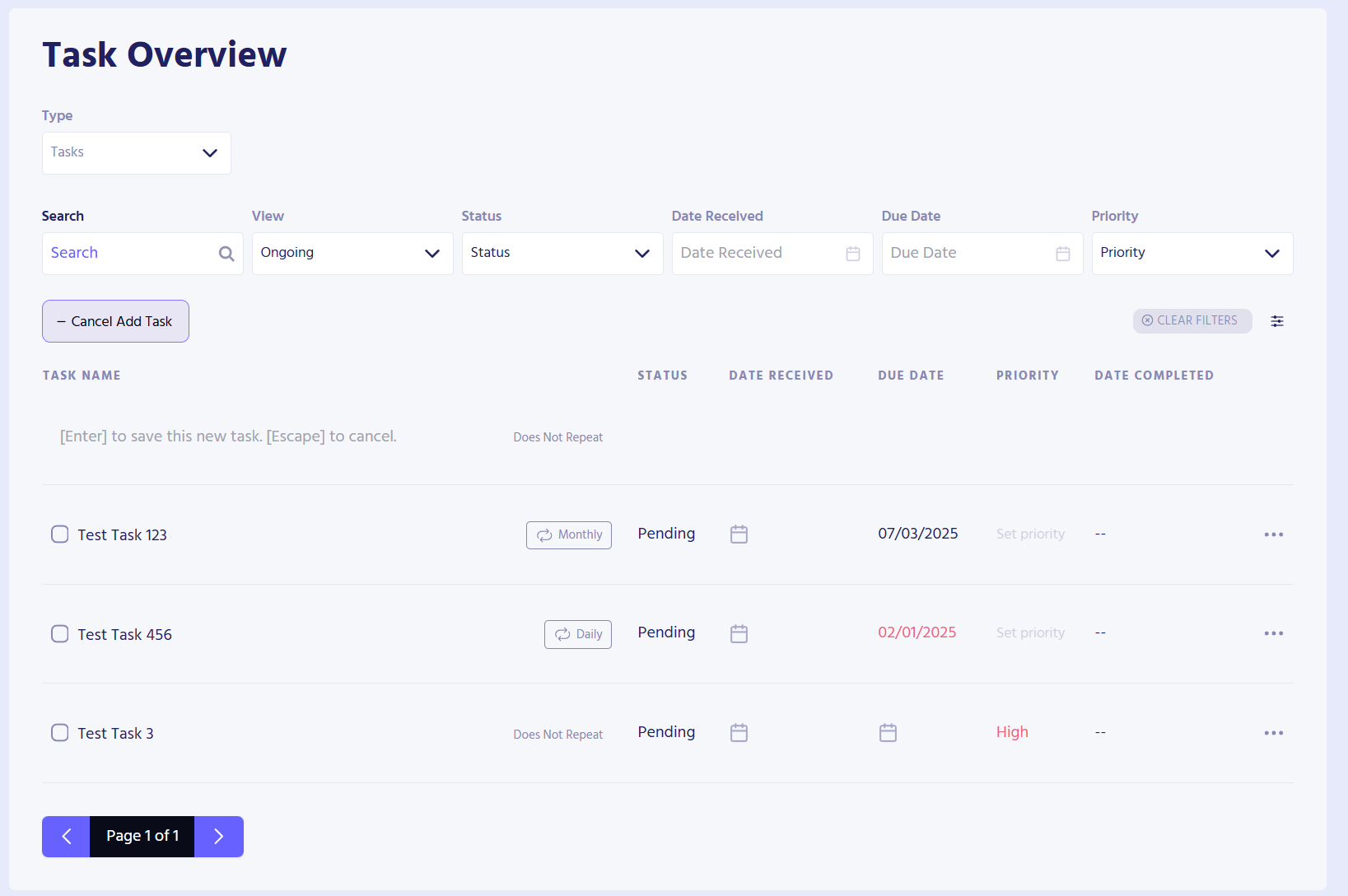 - Add Date Received, Due Date, and set your task’s Priority.